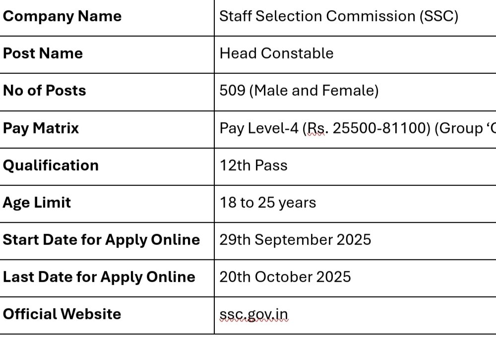 SSC Delhi Police Head Constable (Ministerial) Recruitment 2025 – Apply Online for 509 Posts The Staff Selection Commission (SSC) Recruitment