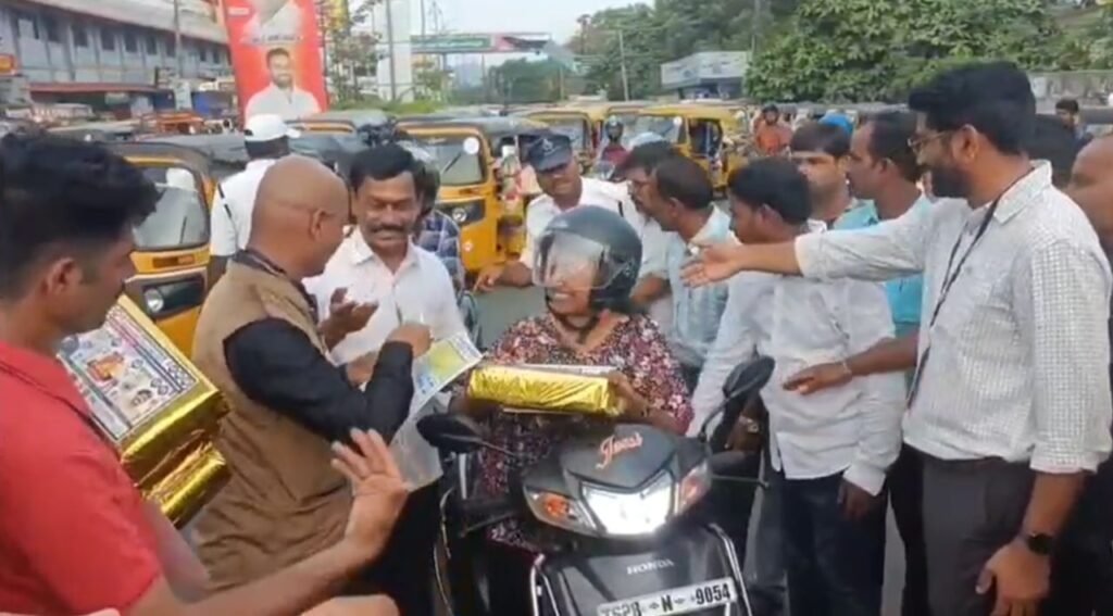 Collector’s compliments to motorists who wear helmets. హెల్మెట్ వాడే వాహనదారులకు కలెక్టర్ సైర్ఫ్రైజ్.. రోడ్డుపై వాహనాలు ఆపిమరీ.. రోడ్డు ప్రమాదాల నివారణకు భద్రాద్రి కొత్తగూడెం